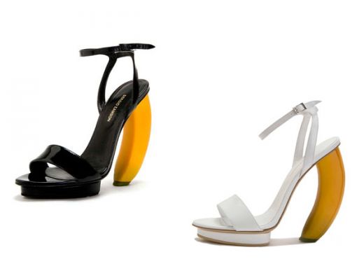 Il noto stilista Sergio Zambon ha disegnato un duo di calzature davvero singolari, ispirato alle opere dell’artista austriaco Erwin Wurm, il quale ama reinterpretare oggetti di uso comune in modo alquanto ironico e spesso bizzarro. I sandali di Sergio Zambon provvisti di vertiginoso tacco a banana sagomato dall’intenso giallore del frutto esotico in netto contrasto con il bianco e il nero, i due colori principali scelti dal designer per rappresentarne la creazione, sono realizzate in edizione limitata e disponibili soltanto in note boutique esclusive.