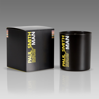 Paul Smith MAN introduce nella linea la profumatissima candela esclusiva, presentata in un grande contenitore di forma cilindrica in vetro color nero che contrasta il marchio vivido in bianco e giallo, nonché la cera gialla al suo interno. L’altezza é di 8 centimetri per 8 centimetri di diametro. Il corrispettivo é di £35.