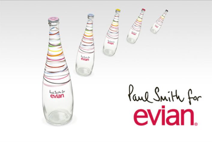 Dopo Christian Lacroix nel 2008 e Jean Paul Gaultier nel 2009 (www.evianjeanpaulgaultier.com) ora la bottiglia Evian si veste di nuovi colori scegliendo il marchio Paul Smith.