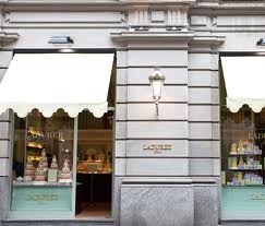 La celebre maison della pasticceria più famosa al mondo, Ladurée, apre i battenti in via Spadari 6 a Milano, grazie all’intuizione della imprenditrice italo-russa Svetlana Voloshyna che ha voluto portare una piccola porzione di Parigi anche qui in Italia. Milano è sempre stata la città della moda, ma da oggi passeggiando lungo questa via ritroviamo uno spaccato parigino con le sue dolcissime vetrine corredate con l’esposizione dei famosissimi Macarons, dolci tipici francesi.All’interno per ora, sostiene Svetlana, non è possibile consumare seduti considerata la mancanza della sala tè, cosa evidente nelle altre pasticcerie della capitale francese e nel mondo, famose anche per questo. Un arredamento raffinato e di lusso, curato secondo i dettami della storica decoratrice Madeleine Castaing che a tal proposito rinomata per aver curato l’allestimento di molte boutiques parigine. Oro, mogano e marmi riempiono gli spazi come viene rigidamente dettato dalla politica dirigenziale di Ladurèe.