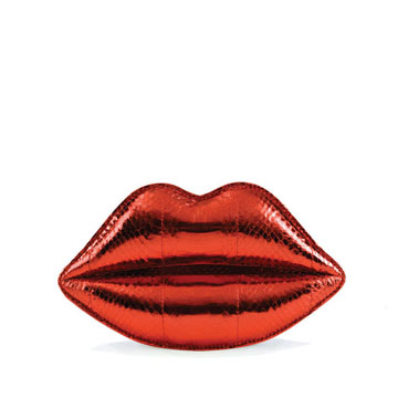 Bellissima clutch bag dai colori assortiti in pelle di serpente a forma di labbra in stile Lulu Guinness.