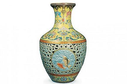 La nota casa d’aste inglese Bainbridges ha recentemente chiuso una meravigliosa vendita all’incanto di uno straordinario, nonché raro, autentico vaso cinese del 18° secolo realizzato in porcellana, appartenuto all’imperatore Qianlong, della dinastia Qing, per un corrispettivo d £53 milioni. Il prezioso pezzo d’arte é stato ritrovato trovato nella vecchia dimora degli ultimi proprietari nel nord-ovest di Londra. Il vaso risale al 1740 circa, decorato con un delicato motivo “humorous fish” e realizzato con una tecnica raffinata, molto elaborata, che permette di osservare attraverso le piccole perforazioni il vaso più piccolo contenuto nel suo involucro esterno. Il nuovo acquirente é un ricchissimo appassionato di arte imperiale del suo paese di origine.