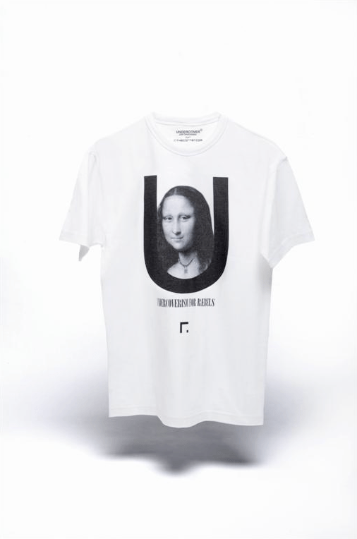 Arte, musica, design e creatività come tripudio commemorativo… Jun Takahashi svela il segreto della sua ispirazione: “Sid Vicious, il bassista dei Sex Pistols ha indossato questa collana fino alla sua morte. La mia Monna Lisa ne indossa una uguale. Dedico questa t-shirt a tutti i ribelli”.
