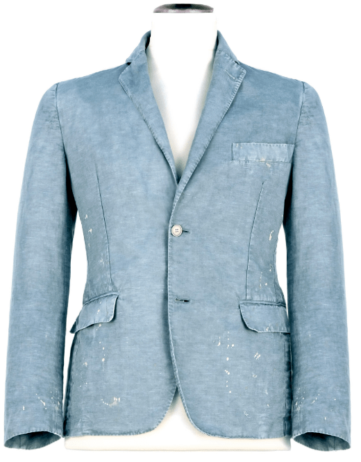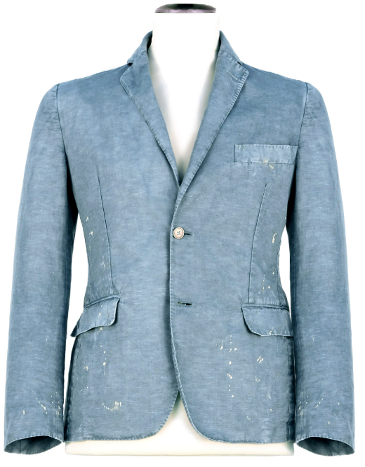 Royal Hem, affianca alla proposta P/E 2011, una capsule collection denominata ART, all’interno della quale trovano spazio esclusivi capi rifiniti a mano, dove i protagonisti sono i lavaggi e le tinture tra cui: la tintura ice, super-vintage e art ed i lavaggi old e al glucosio. Il pacchetto comprende: un trench, un blazer, un picoat, una t-shirt e un pantalone in denim.Nella fotoGiacca realizzata in tessuto di lino/cotone tinta in capo e sottoposta ad un trattamento old che conferisce al capo un aspetto used-raffinato. L’effetto spruzzato viene realizzato a mano rendendo così ogni giacca unica e irripetibile. Il fit è molto asciutto: è il classico fit “Royal Hem”. La giacca è completamente decostruita in modo da assumere i connotati di una giacca-camicia in grado di vestire il corpo come una seconda pelle. I bottoni sono realizzati in una resina particolare che si tinge insieme al capo in modo da ottenere una nuance tono su tono.