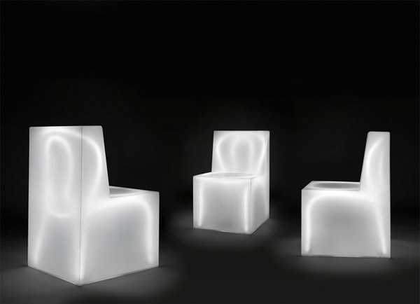 Essere originali progettando una seduta non è una cosa da poco, negli anni il design ha proposto moltissime soluzioni diverse (alcune azzeccate, altre meno) spaziando in tante direzioni diverse. Questo progetto di Christian Flindt, designer danese, racchiude una forma classica (una sedia thonet?) all’interno di un blocco puro, scultoreo e bianco. L’anima della seduta emerge solo grazie all’illuminazione che fa vedere, come in una sorta di visione a raggi X, l’ossatura della sedia.
