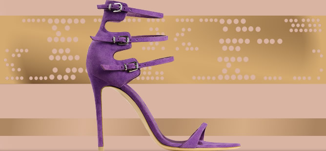 La collezione P/E 2011 di Gianvito Rossi è una delle più affascinanti in assoluto, la cura che questo giovane talento mette nel creare scarpe che esaltano al meglio la bellezza delle estremità femminile mi stupisce sempre; per iniziare al meglio questa settimana ho scelto un sandalo in suede viola acceso, uno dei miei colori preferiti. Un modello essenziale che scopre quasi completamente il piede, esaltando le curve del collo e della caviglia grazie ai tre listini sottili.