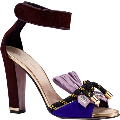 Il tacco misura 10 cm, ma non essendo a spillo risulta piuttosto comodo, adatto a chi non è abituata a portare i trampoli per tutto il giorno, soprattutto quando il cado diventa soffocante. L’elegante cinturino alto alla caviglia non appesantisce le forme di un sandalo femminile ma non banale, mi piace molto la fascia anteriore, in suede blu elettrico con cordino e mezzo fiocco piatto lilla: un sandalo da vera signora, j’adore!