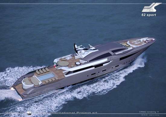 Dislopen: design performante derivante dalle navi open, unito al comfort e alla grande comodità dei yacht dislocanti; questo il significato del nome di questo nuovo concept yacht presentato dai cantieri navali CRN a Londra.