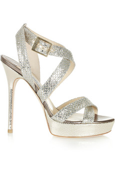 Il modello si chiama “Vamp” e appartiene alla collezione Choo 24:7; il tessuto metallizzato effetto glitter riveste anche il tacco di 11,5 cm, e il vistoso platform. In vendita nel sito ufficiale Jimmy Choo, questi sandali costano €550.00.