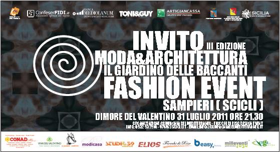 Anche quest’anno Confeserfidi partecipa e promuove attivamente la III edizione di Moda&Architettura dal titolo “Il Giardino delle Baccanti”. Si tratta di una installazione di Alta Moda a cadenza annuale che quest’anno coinvolge come location un’antica masseria, le Dimore del Valentino in località Sampieri, risalente al tardo ‘800, adagiata su una dolce e suggestiva valle ricolma da macchia mediterranea; luogo di estrema bellezza, location da sogno in cui e’ possibile rivivere il ricordo delle memorie passate…., recentemente recuperata e destinata a fini turistici.