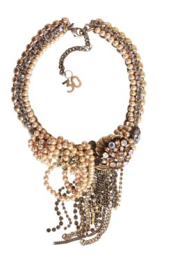 Radà, brand storico di gioielli/accessori che si distingue da sempre nel mondo per un inconfondibile stile showy chic originato dall’uso di materiali più diversi dai metalli alle pietre alle, piume, stoffe, spille, plastica, “cuciti” su materie tessili, senza mai nulla di saldato ha realizzato per il suo trentesimo anniversario un collier in limited edition che sarà venduto in soli 300 pezzi.