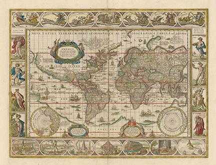 Questa splendida rappresentazione a muro venne realizzata a mano dal prestigioso cartografo olandese Willem Blaeu nel lontano 1625 ed in seguito ridimensionata dall’artista Josua van Ende per l’inclusione negli atlanti dell’epoca.