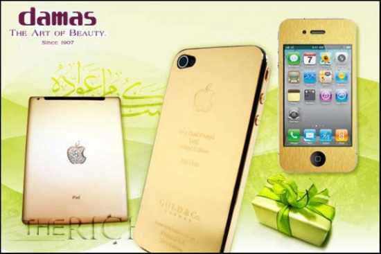 Damas, dispositivi iPhone Apple, iPad Apple e Blackberry in oro