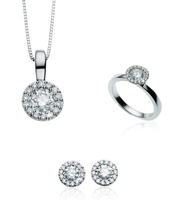 Il pendente, l’anello e gli orecchini “Verity”, sono caratterizzati da un pregiato diamante centrale, incorniciato da altri più piccoli che lo rendono ancora più prezioso e luminoso. Disponibili ognuno in tre diverse carature.