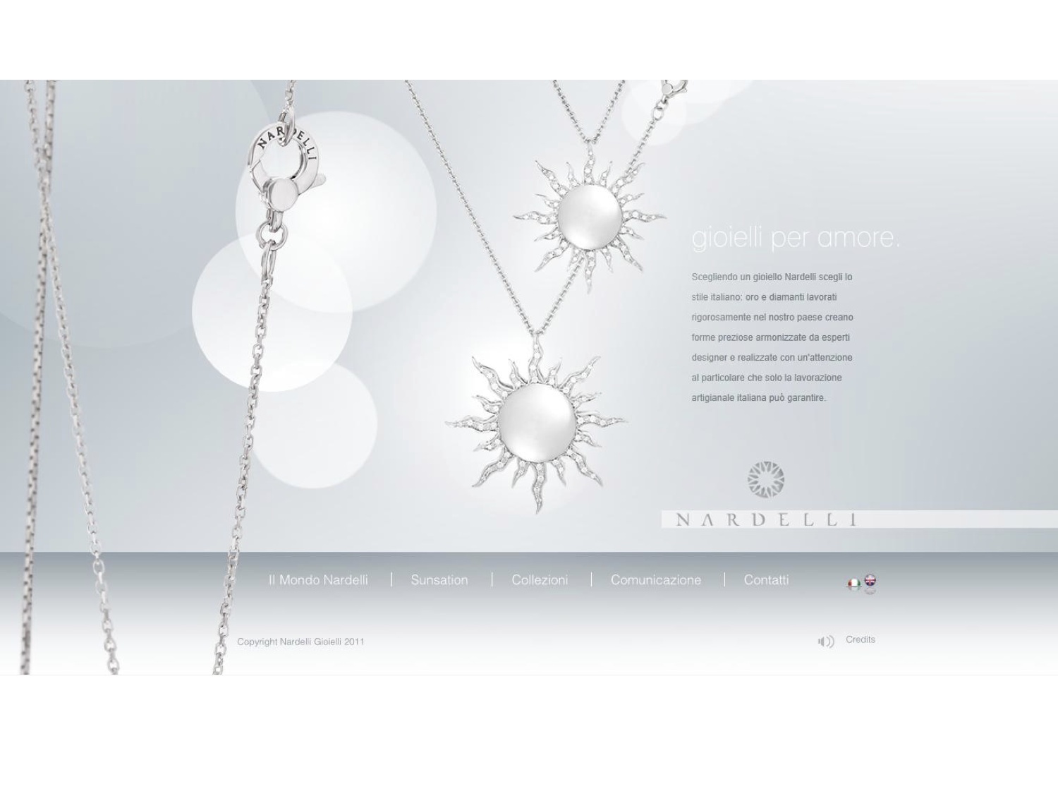 Prezioso, ricercato, “solare”. È questo l’identikit del nuovo sito internet della Nardelli Gioielli (www.nardelligioielli.it), azienda orafa partenopea di respiro internazionale, “mamma”, tra l’altro, dell’esclusiva linea “Sunsation Capri”, gettonatissima in Giappone come a Dubai. Oltre 30 anni di esperienza, sintetizzati in una manciata di click, studiati ad hoc da un affiatato team di web designer che ha messo a punto un portale elegante, ma funzionale capace di soddisfare tutte le curiosità e le esigenze delle numerose fan del marchio e non solo. Un lavoro molto ben riuscito che ha già ottenuto la nomination al concorso mondiale International Web Design per la proclamazione del Website del 2011.