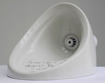 L’artista aveva utilizzato questo orinatoio in un set fotografico per Vogue Hommes Japan nel 2010, scrivendo su di esso testuali parole: “I’m not f**king Ducamp but I love p**sing with you”.