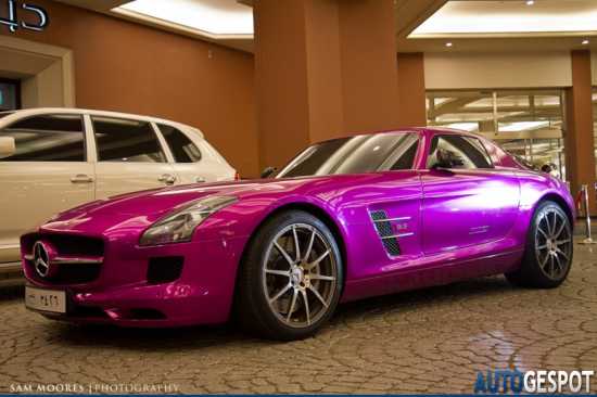 Stavolta si tratta di un bolide sorprendentemente luccicante, in grado di attirare lo sguardo di tutti, ma in particolare quello delle donne; una Mercedes SLS AMG con verniciatura fucsia, che farebbe invidia a personaggi VIP come Paris Hilton e Katie Price.