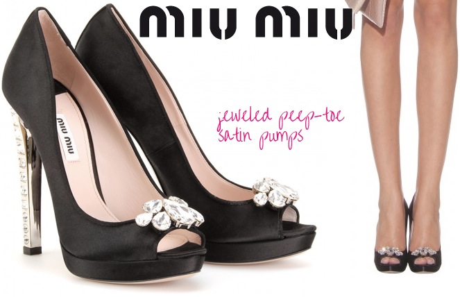 Raso nero, tacco altissimo gioiello NON da soubrette attempata, plateau discreto, broche gioiello appuntata sulla tomaia: ogni dettaglio di queste spuntate è un colpo al cuore, una piccola coltellata che si infila nella mia carne molliccia (davanti alla bellezza pura cede, non è sempre molliccia, ndr). Se non costassero circa 1000 euro invece che stare qui a delirare sarei in boutique, dannazione.