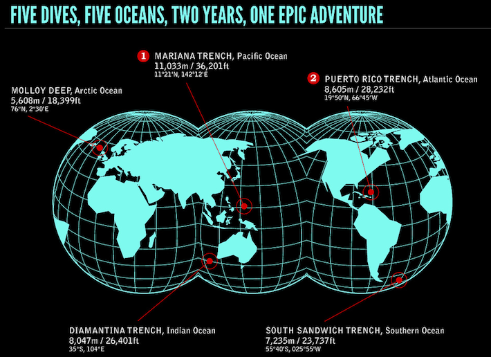 I fondali più profondi del pianeta, che sono stati esplorati finora solo con robot saranno dunque l’obiettivo di Virgin Oceanic. Come come prima tappa prevede proprio l’immersione nella fossa delle Marianne, a 10.994 metri sotto il livello del mare, la fossa più profonda del pianeta. Questa prima tappa sarà guidata da Chris Welsh, un esperto di barche a vela. Sarà lui a guidare il sottomarino di Virgin Oceanic, il veicolo che è alla base di tutta la missione…