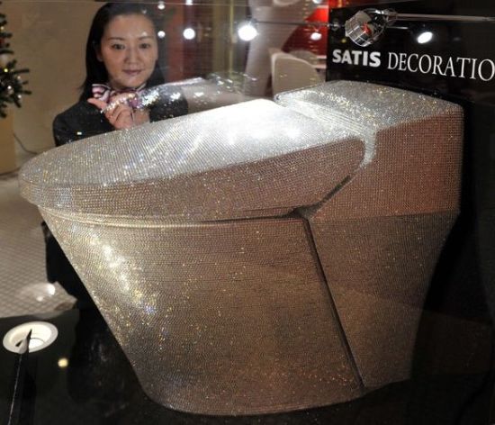 Parliamo del nuovo WC ricoperto da cristalli Swarovski; per l’esattezza sono 72 mila cristalli, tutti intagliati e incastonati a mano.