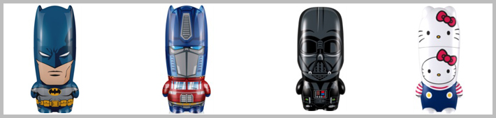 Se siete fan dei personaggi DC Comics, Hello Kitty, Star Wars e Transformers sappiate che un gadget tecnologico non potrà sfuggirvi in alcun modo! Sto parlando delle chiavette usb Mimoco, una fusione geniale tra fumetto, design e tecnologia unica e super resistente, disponibile da 2 GB a 64 GB. Il prezzo non è certo dei più convenienti: si oscilla da 22,95 $ con uno spazio di 2 GB fino ad un massimo di 119,95 $ per la versione da 64 GB; maggiori dettagli sul link di seguito!