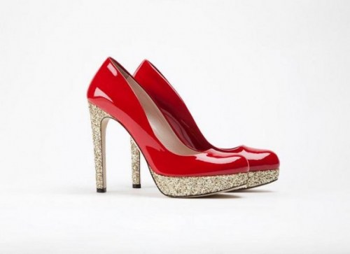 Mai come in questi giorni sembra opportuno strafare con scarpe un pò pazze, magari colorate o glitterate. O magari colorate e glitterate, come queste decolletè in pelle lucida rosso ciliegia, firmate De Siena.