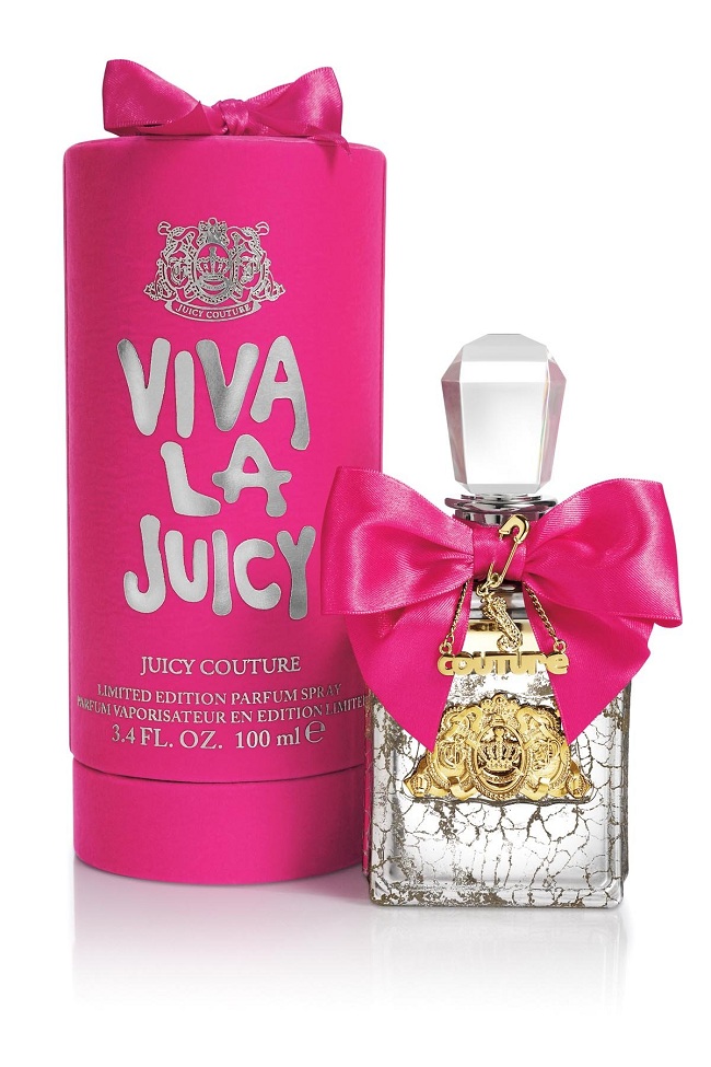 Viva La Juicy di Juicy Couture rinasce in una nuova versione Parfum presentata in edizione limitata per l’autunno inverno 2012 – 2013. La bottiglia Limited Edition è immersa nel platino per riprodurre perfettamente la perfezione della gioielleria vintage mediante un processo di metallizzazione del vetro realizzato in tre fasi, trattasi d’altronde della prima volta che siffatta procedura viene applicata al mondo delle fragranze. Segno distintivo della fragranza è il fiocco fuxia in raso, arricchito con charme dalla parola Couture e ispirato agli accessori moda del marchio. Note di testa: frutti di bosco, mandarino. Note di cuore: caprifoglio, gardenia, gelsomino. Note di fondo: ambra, caramello, praline, sandalo, vaniglia.