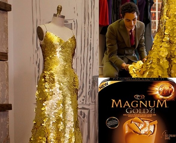 > Magnum Gold Ice Cream Algida, abito in oro 24 carati da Zac Posen > abito-oro-donna