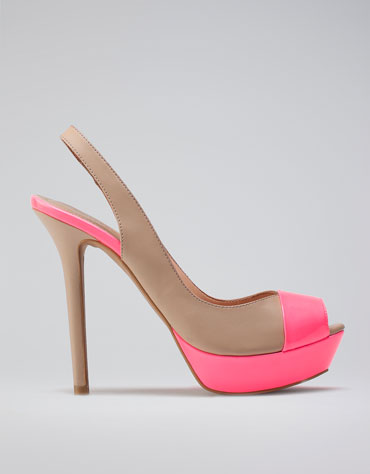 Per seguire il trend senza svuotare il portafoglio ci sono sempre i colossi del lost cost, Berhska in particolare, che per l’estate 2012 vanta una delle collezioni di calzature più particolari, ricca di modelli ben fatti, come questa decolletè modello Chanel, spuntata, in ecopelle nude e dettagli fuxia fluo.