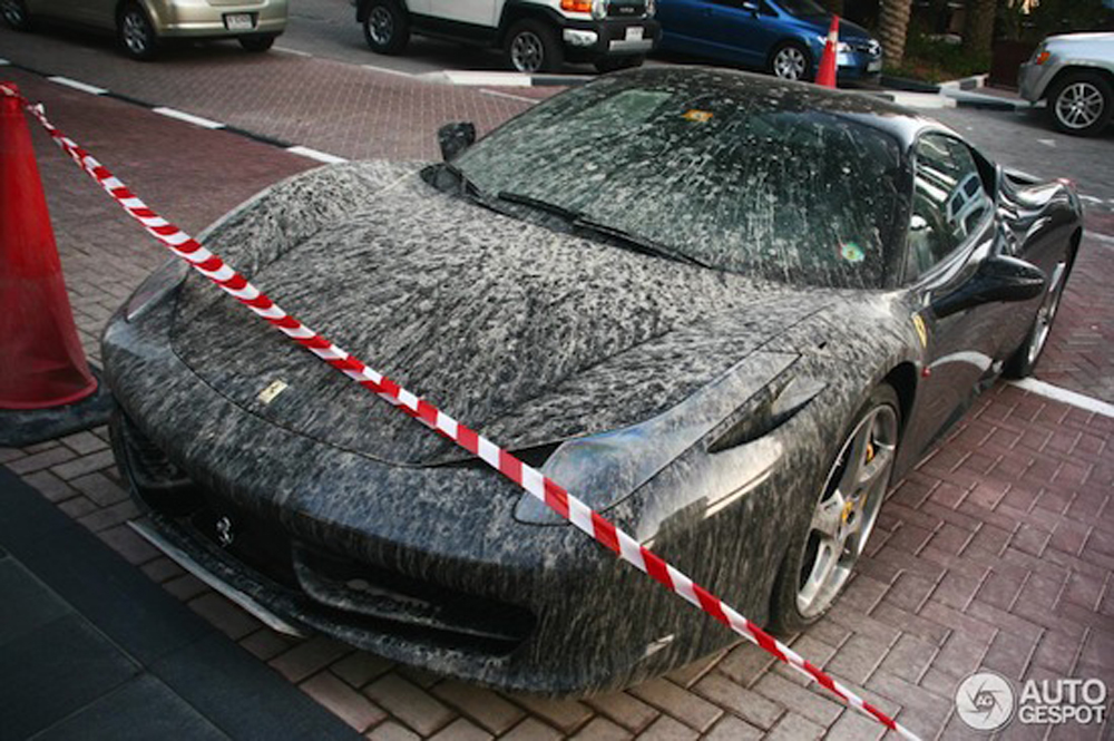L’auto che vedete nella foto in alto, come potete notare, è un’auto sommersa da bisogni fisiologici di volatili. Tutto ciò, è dovuto al suo padrone, che l’ha abbandonata per diversi giorni sotto una palma, lungo una strada di Dubai, dove la 458 Italia in questione è stata presa d’assalto dagli uccelli.