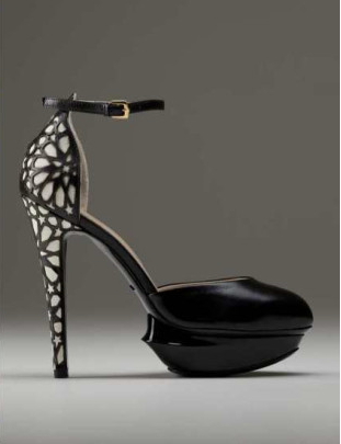 Si tratta di un paio di decolletè Alberto Guardiani, con tacco altissimo, cinturino sottile alla caviglia e maxi platform scultura: fanno parte dell’attuale collezione P/E 2011, e sono realizzate in pelle; trovo splendido lo stile marocchino declinato sotto forma di ricamo su tacco e tallone. In vendita anche nello store online di Alberto Guardiani, queste scarpe costano 365 Euro.