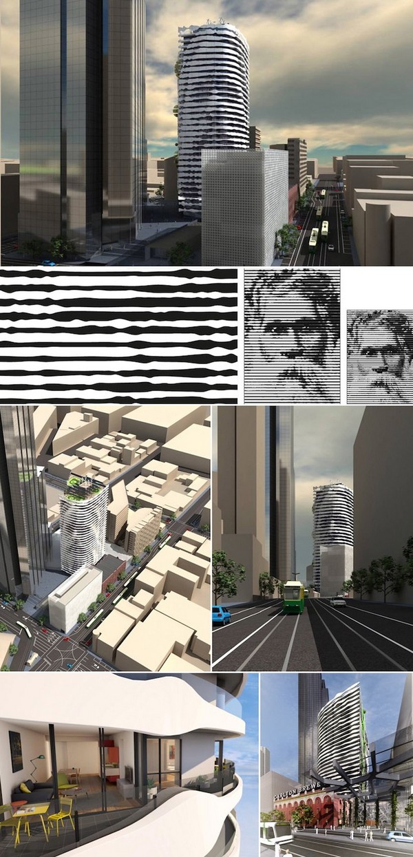 Difficilmente nell’ambito dell’architettura sentiamo parlare di plagi, quando due progetti si assomigliano in maniera “sospetta” uno dei due si identifica come un omaggio ad un altro architetto, oppure s’inserisce l’opera all’interno di un movimento con determinata caratteristiche stilistiche. Oggi mentre navigavo tra alcuni siti di architettura ho trovato le immagini di sopra che riguardano un grattacielo a Melbourne progettato dallo studio ARM architects con sede in Australia, il disegno della facciata mi ha subito interessato ma mi dava una strana sensazione di deja vu.