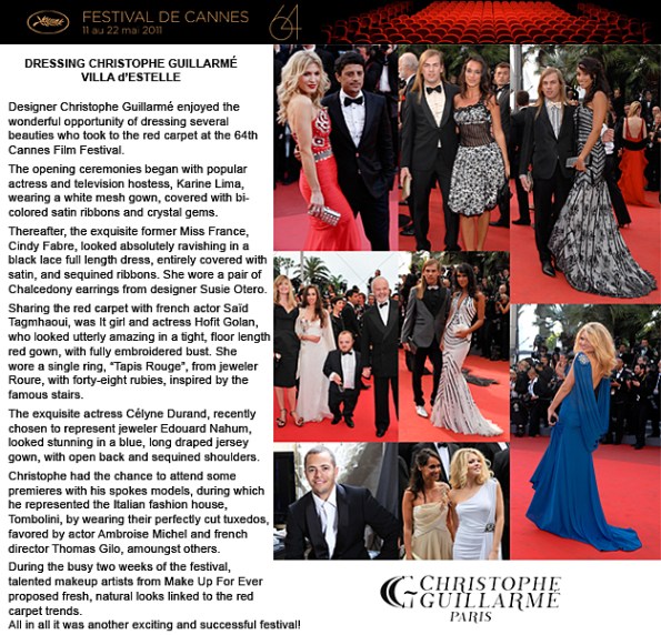 Designer Christophe Guillarmé enjoyed the wonderful opportunity of dressing several beauties who took to the red carpet at the 64th Cannes Film Festival.