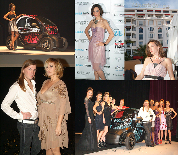 A l’occasion du 9ème Cannes Shopping Festival, le créateur Christophe Guillarmé a présenté ses dernières créations au Grand Auditorium du Palais des Festivals de Cannes en présence de ses amies et égéries qui ont ravi les photographes lors d’un rendez-vous ensoleillé au Majestic Barrière en amont du défilé : la comédienne Natacha Amal sublime dans une mini-gandoura rebrodée en soie camel, Salomé Stévenin, bientôt à l’affiche de «Madame Solario» avec Cyril Descours, en mini robe drapée en tulle, et la ravissante chanteuse Melissa Mars dans une robe en tulle de soie vieux rose rebrodée de cristal conquise de découvrir le nouveau véhicule 100% électrique de Renault relooké par Christophe Guillarmé, mis en scène dans le show comme un véritable modèle : Twizy se décline en python turquoise ou en version rock riviera!