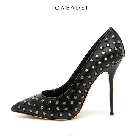 Quando ho letto “neo punk” tra le categorie presentate nel sito Casadei mi si sono illuminati gli occhi, perché speravo di trovare qualche scarpina aggressiva ma pur sempre femminile, simile ai modelli che al momento propone solo Louboutin, e così è stato: a colpirmi sono le decolletè, il modello più tradizionale in assoluto, con tacco a spillo e punta affilata non troppo scollata.