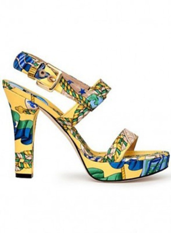 Dolce&Gabbana propone scarpe davvero originali e creative per la primavera estate 2012, come si vede dal modello realizzato per D&G, appartenente alla collezione che comprende ballerine, infradito, sandali con tacco e zeppe vistose, tutti modelli impreziositi da stampe foulard di ultima tendenza, ovviamente comuni a tutte le uscite della collezione. Le zeppe in effetti sono impreziosite da stampe originali proposte in due versioni differenti, un modello con fibbie e l’altro con charm color oro. Anche modelli flat, come ballerine e infradito, sono di tendenza per la stagione calda imminente.. pratiche, estremamente eleganti e comode impreziosite da fiocchetti decorativi diventato un must da indossare regolarmente. Una collezione divertente e solare per festeggiare i venti anni del marchio D&G, che dalla prossima stagione usciranno nella collezione Dolce & Gabbana.