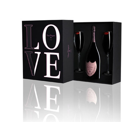 Il coffret Dom Pérignon Rosé LOVE contiene al suo interno una bottiglia di Rosé Vintage 1988 e due flûte con bacio rosso. Anche la nuova glacette é firmata Marc Newson, pensata proprio per custodire una bottiglia di Dom Pérignon Rosé.