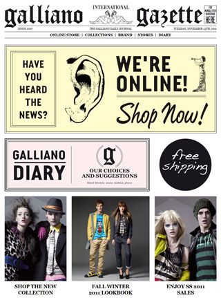 La maison John Galliano entra nel cyberspazio. The John Galliano Company, in collaborazione con Ittierre e The Level Group, lanciano lo store online del marchio John Galliano. Creato e gestito dalla societa’ specializzata The Level Group, il nuovo store sul web unisce contenuti e-commerce allo spirito inconfondibile della maison. Nel nuovo sito, le collezioni pret a porter e accessori per uomo e donna.