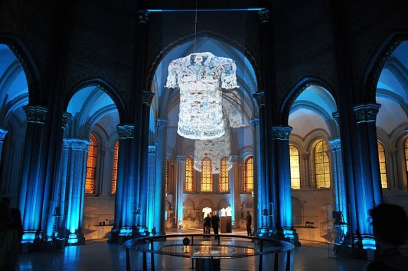 Li Xiaofeng si forma come artista muralista, ma si rivolge in seguito alla scultura esplorando un nuovo concetto di espressione dei paesaggi cinesi. La sua scelta del materiale è inaspettata: invece di marmo, legno o addirittura vetro, preferisce comprare cocci di porcellana fracassati e recuperati da antichi scavi archeologici, alcune risalenti alla Dinastia Ming, e poi lavorati mediante sagomatura e lucidatura, perforandone ogni angolo, ed infine legati insieme con filo d’argento per creare “paesaggi ri-arrangiati”. Questi pezzi poetici, meglio descritti come post-orientalisti, solitamente prendono la forma di abiti, compresi i tradizionali costumi cinesi, ma anche cravatte e uniformi militari. Essi sono assolutamente indossabili, anche se immagino che il peso complessivo sia maggiore di qualsiasi corazza indossata.