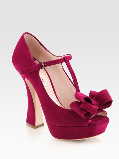 Le scarpe colorate in estate sono un must facile da reperire e abbinare, ma quando il sole si fa pallido e arrivano i primi freddi è più semplice lasciarsi avvolgere da un sicuro nero piuttosto che combattere la noia a suon di tonalità allegre; eppure per l’autunno 2012 rinunciare al colore sarà impossibile per chi ama seguire la moda, quindi preparatevi ad uno shopping pre-fall goloso ed energizzante. Ho trovato interessante queste decolletè in suede rosa scuro, femminili e dall’appeal vintage, come solo MiuMiu sa fare.