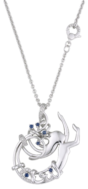 Un prezioso pendente in oro, diamanti e zaffiri realizzato da Nardelli Gioielli su disegno di Carmen De Bernardo, giovane jewelry designer diplomata alla scuola di designer del Tarì e vincitrice del concorso “Un Gioiello per Sorrento” Premio Cristina Poli.