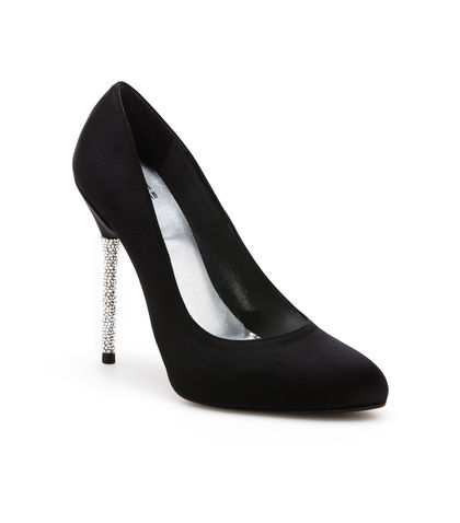 Stuart Weitzman, décolleté satin nero con tacco gioiello in cristallo Swarovsky