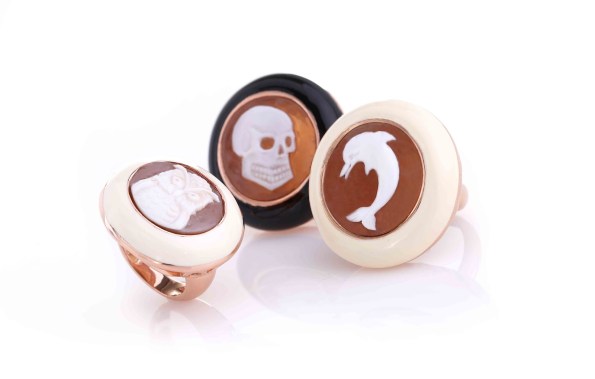 Per questa edizione, grande novità è rappresentata dall’introduzione di smalti colorati, realizzati negli storici laboratori di Firenze, abbinati ai bellissimi e raffinati cammei incisi, per questa collezione, ancora con il bulino e a mano, come una volta. Lavorazione che dona al cammeo un sapore sartoriale e inconfondibile.